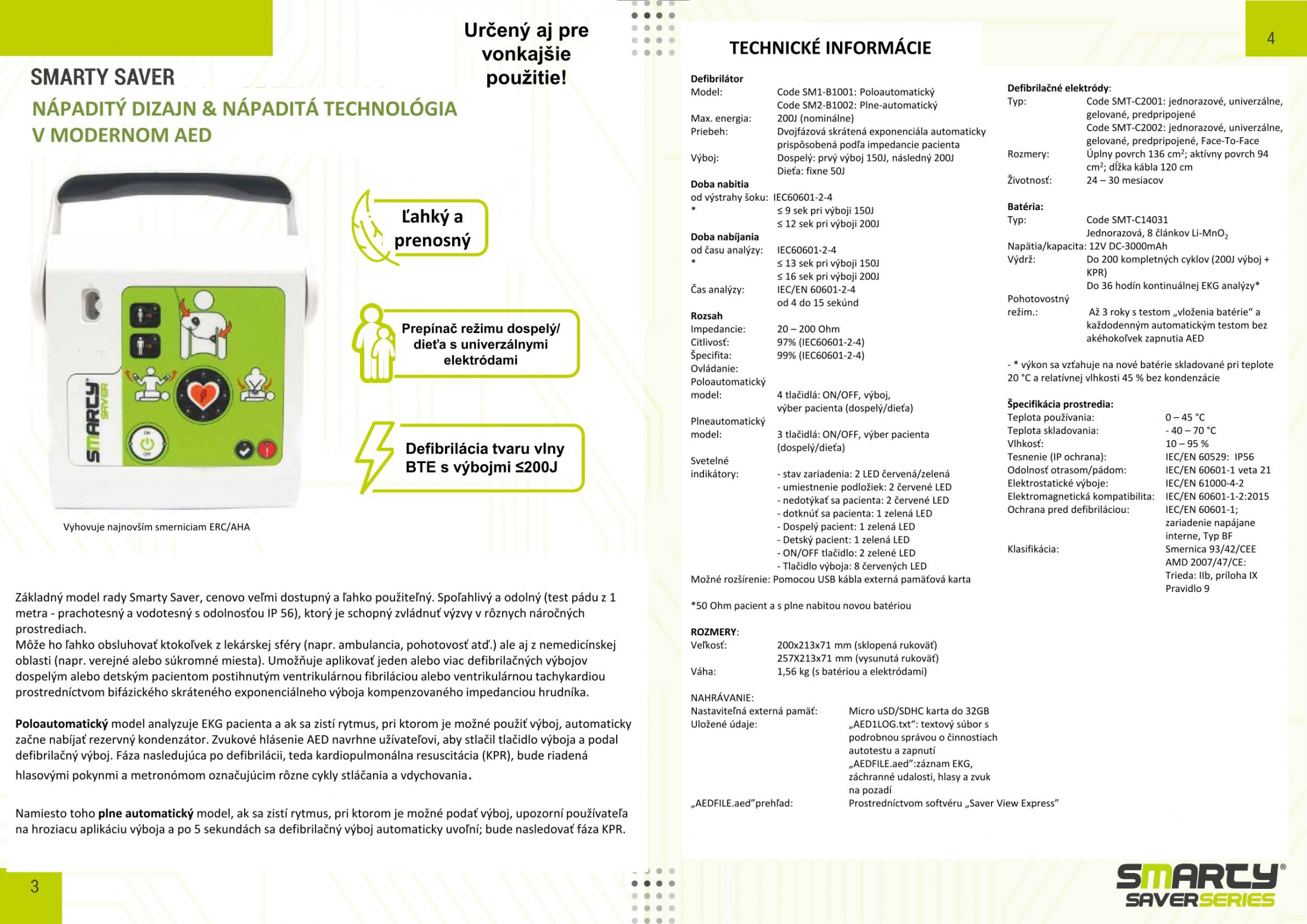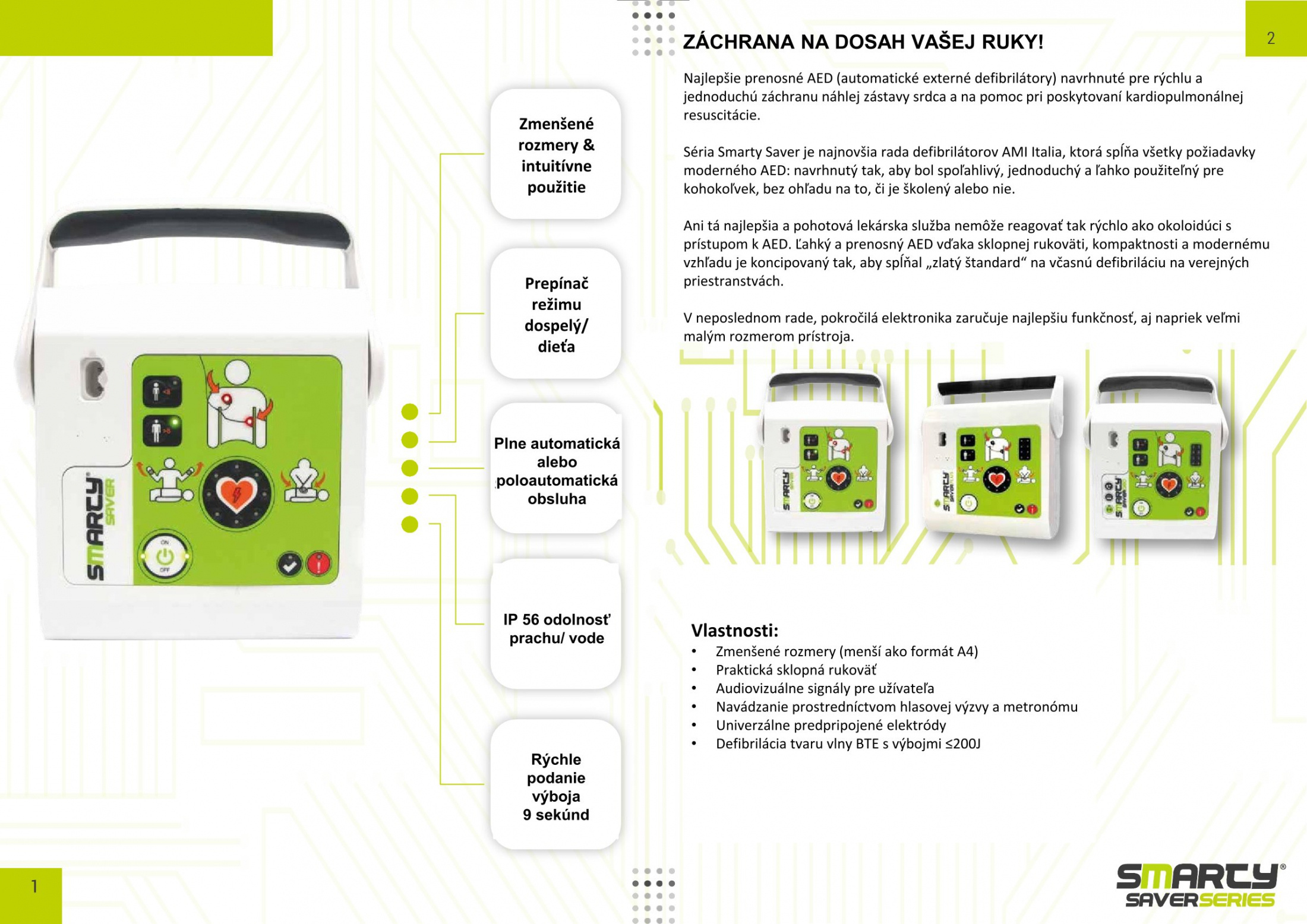 SMARTY Saver je známy ako AED, ktorý je navrhnutý na zvládnutie núdzových situácií s náhlou zástavou srdca a poskytuje podporu pri kardiopulmonálnej resuscitácii (KPR). Toto vysoko efektívne zariadenie je vhodné pre neodborníkov, ale aj pre poskytovateľov zdravotnej starostlivosti.