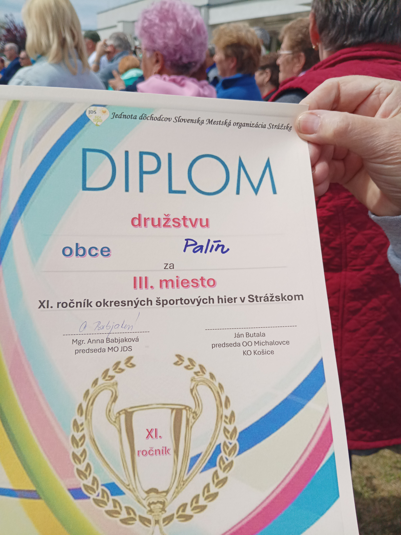 Príjemne strávený čas v meste Strážske, kde sa konali Okresné športové hry JDS za účasti 33 obcí. Studený máj - v stodole raj. Takéto porekadlo platilo presne na tento deň. Bolo nepríjemné studené počasie s vetrom a dažďom, ale napriek tomu sa súťažiacim táto akcia nesmierne páčila. Naše družstvo získalo po rozstrele krásne 3. miesto. GRATULUJEME ! Úspešne reprezentovali základnú organizáciu JDS v Palíne a samozrejme aj našu obec. ĎAKUJEME.